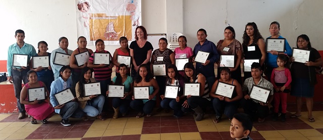 We are extremely proud of this recent group of graduates! More than half lived so far away that they had to spend the week in dormitories In Cuautitlan, away from their families, in order to attend the full course. ALL of them passed their final examinations, but Paty Barreto (top row, second from the right) actually scored 100% on the tough exam! Her little daughter was on hand to witness her mother’s proud accomplishment. Congratulations to these hard working group! There are now 280 Tia Promotores serving about 110,000 people.