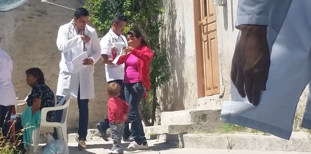 All the consultations and medications were free to the people of Los Aguirres, Jalisco. The weather was quite hot, dusty and muggy today, but the team from UVM (Universidad del Valle de Mexico) worked hard for hours until the last patient was seen. With just a 20 minute break for the midday meal, the team quickly went on to continue the lecture portions of Tia’s Promotores’ training program. These lectures are held at the Centro de Salud in San Juan de los Lagos, where the facilities have more advanced technology available for the PowerPoint slides.