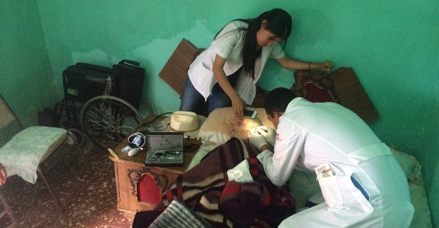 Today, a number of villagers were too ill too leave their homes, so the team made house calls. One brigade member is using her phone to shine light onto this patient’s ears so her colleague can clean his ears. Many of the bedridden had untreated sores that needed cleaning and bandaging. Others were just too sick to be brought to the brigade’s temporary clinic. Many of these young men and women went without the big midday meal (comida) today because they would not leave until everyone was treated. Tonight, Laura is taking them out for a special dinner to thank them for their hard work and dedication!
