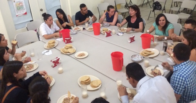 Almost every day, we stopped by the DIF (Family Development Agency) Center in San Juan de los Lagos where we would take a 20 minute break for the big mid-day meal, or comida. This day we had tuna salad, tortillas, tostadas, a vegetable salad and agua fresca. It always felt good to get off our feet for a few minutes.